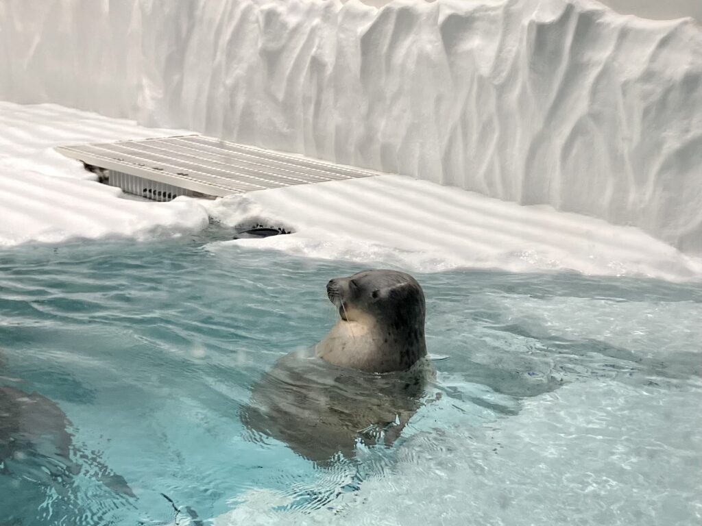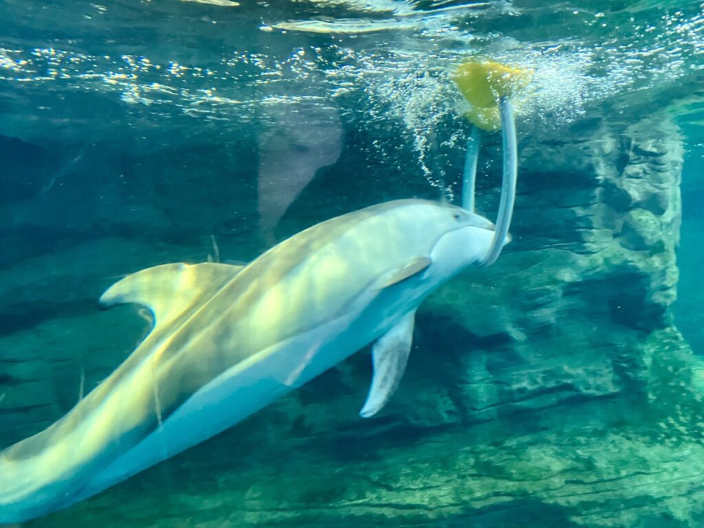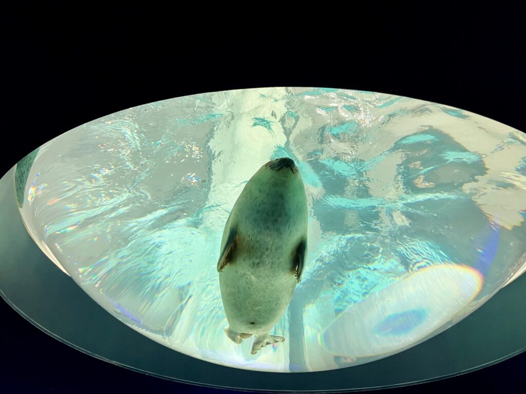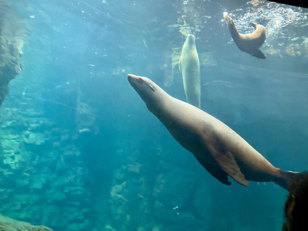 先ほどのイルカもそうですが、ショーだとほぼ陸の上の様子しか見られないので、こうして水中を泳ぐ様子を見られるのはとても貴重で面白かったです。