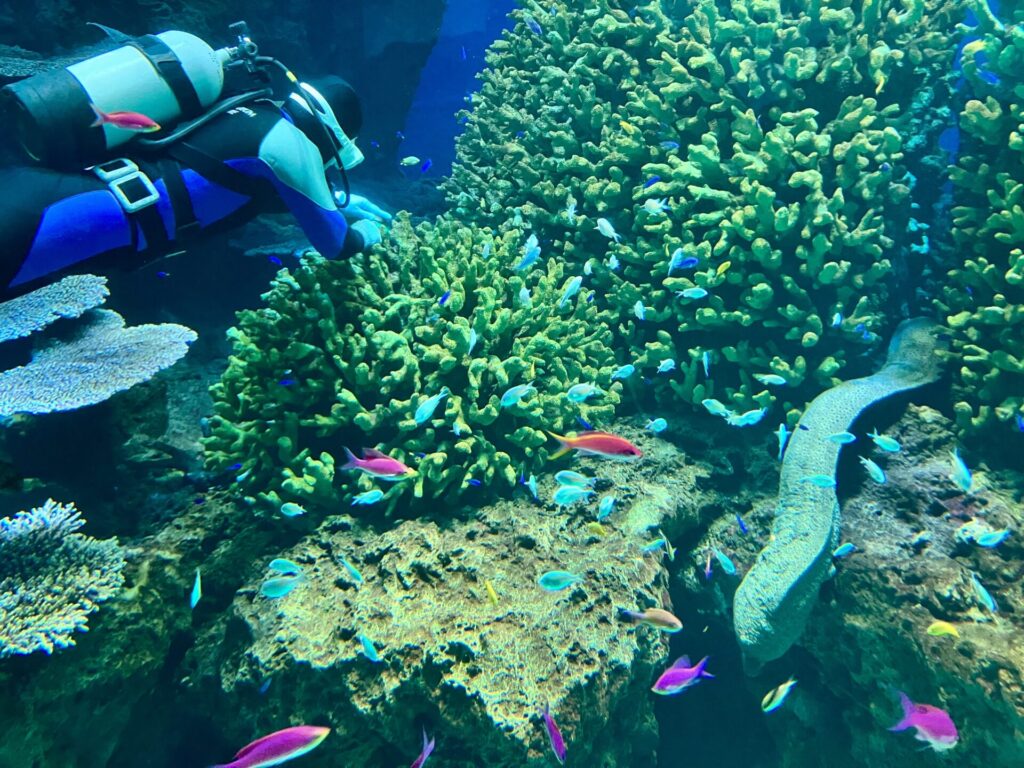 グレート・バリア・リーフの水槽では、珊瑚礁と熱帯魚がそれはそれは美しく。