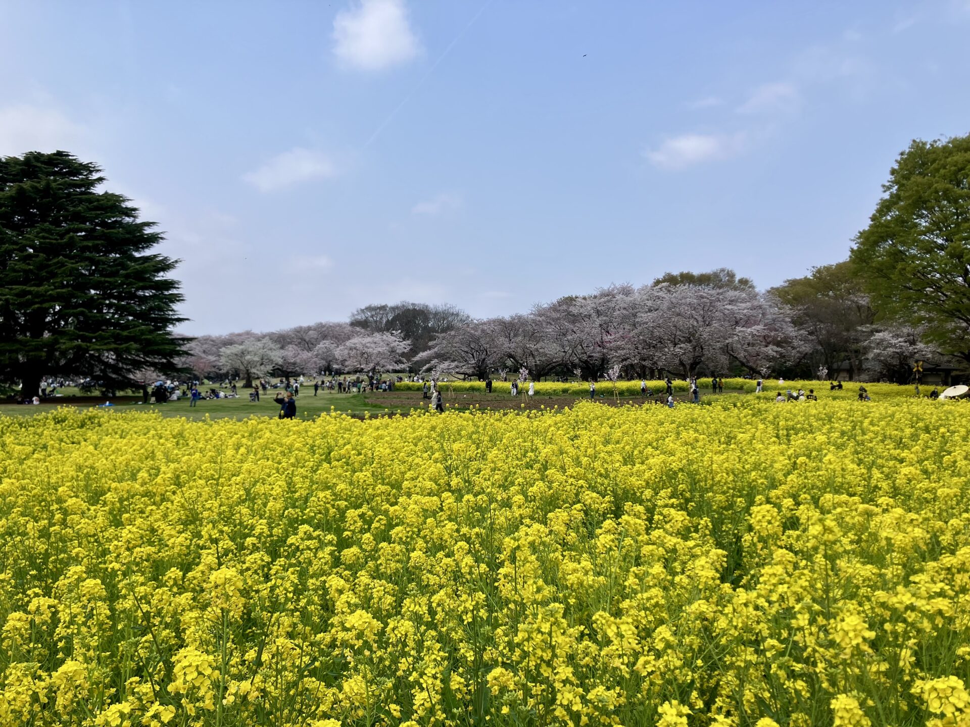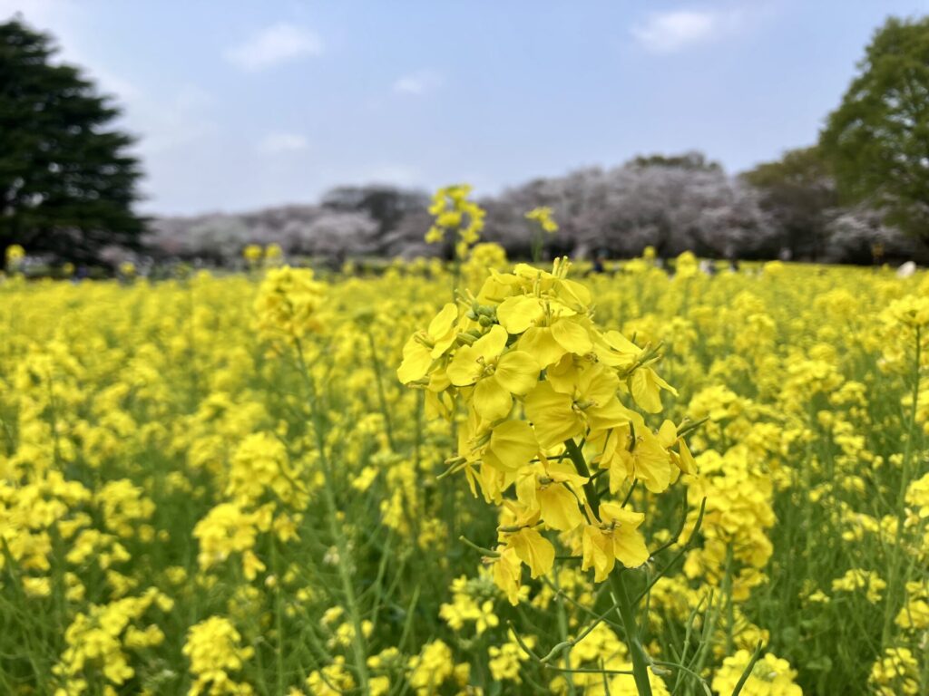 ちょうど桜が見頃を迎える時期。空の青、桜の淡いピンク、そして菜の花の鮮やかなイエローが重なって、どこを切り取っても絵画のような美しさでした。