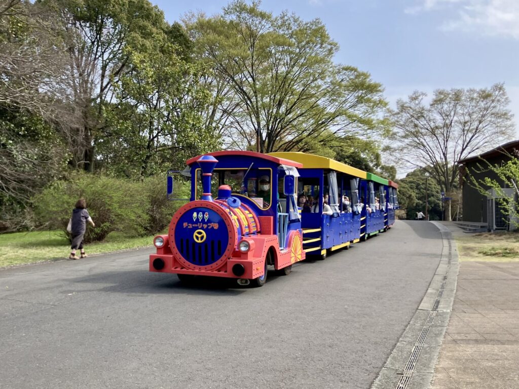 パークトレインで園内を一周しながら、桜はもちろん、チューリップなど桜以外のお花を見るのも楽しかったです。